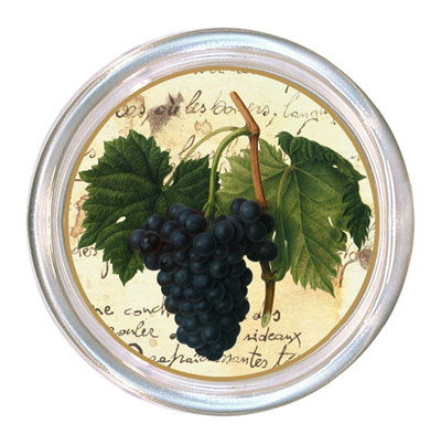 Decoupage wine coaster with gold trim and raised rim. Heavy glass, felt back.